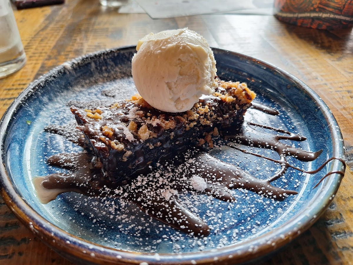 Chocolate Brownie: For dessert, indulge in a rich and gooey chocolate brownie, served with a scoop of vanilla ice cream.